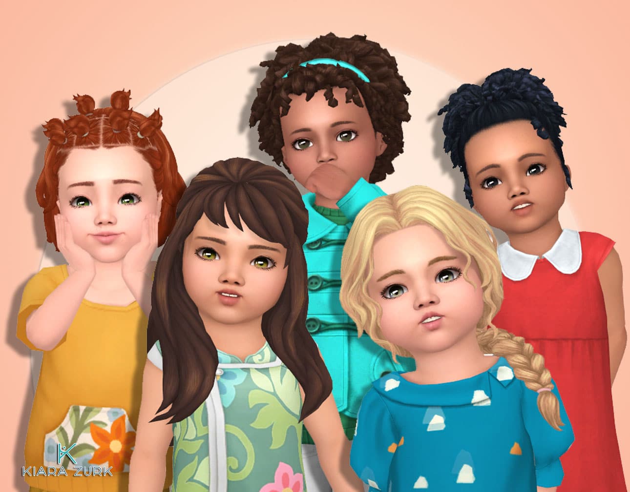 Here are available 5 Toddlers hair + headband recolor (intended for use with Headband Tight Curls) I created for the Sims 4, you can have these without advertising.